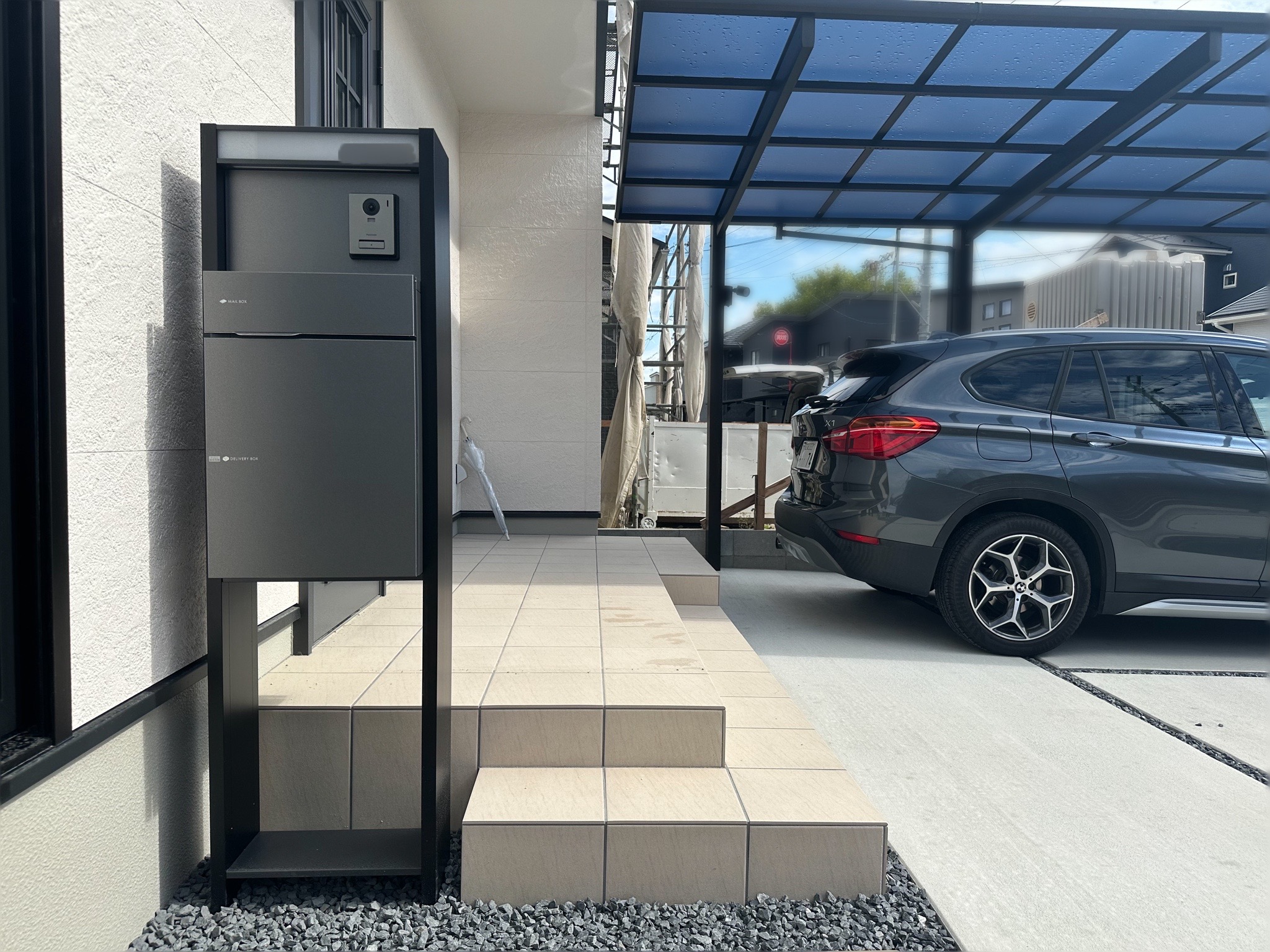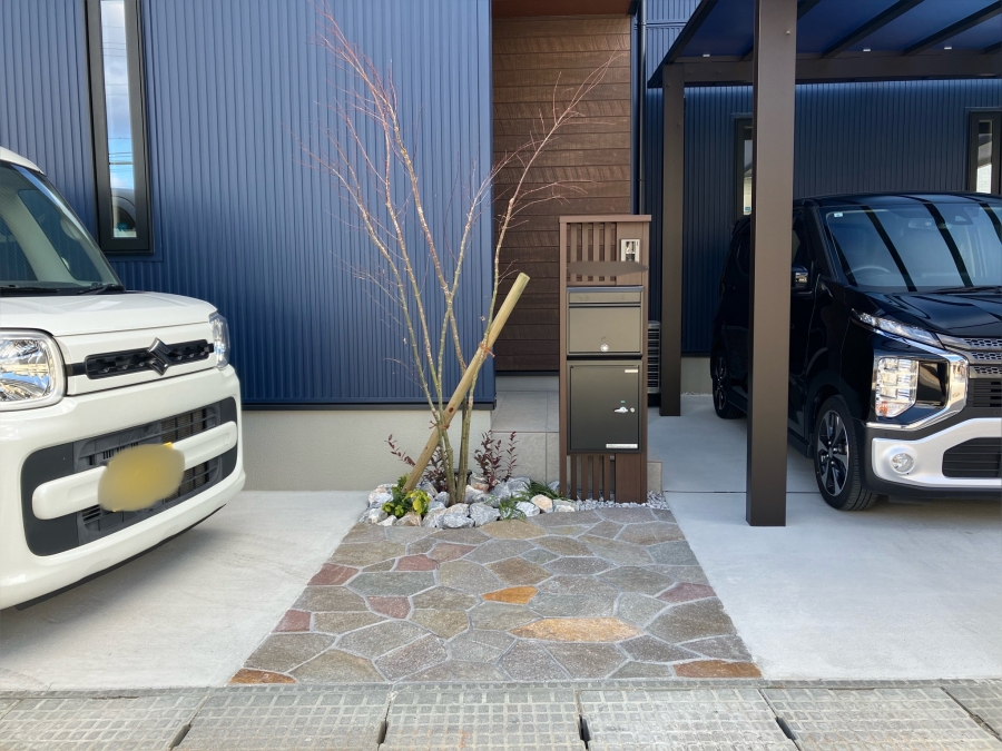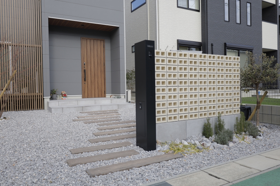 ナチュラルスタイリッシュにまとめた外構に、スマート宅配ボックスを取り入れた施工事例をご紹介しています。