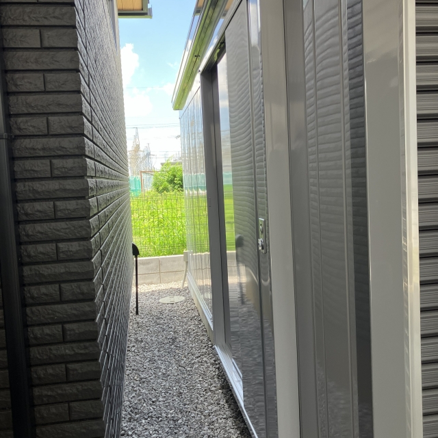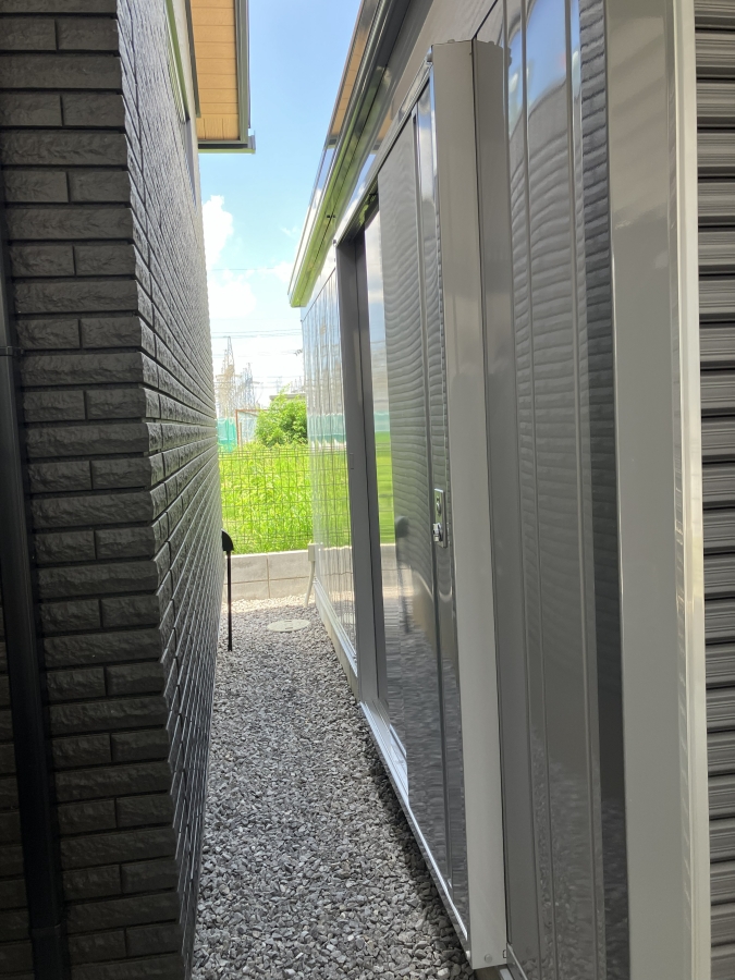 正面のシャッターからだけでなく、オプションとして施工可能な側面扉を採用することで、シャッターを開けずともガレージ内の荷物の出し入れが可能になっています!