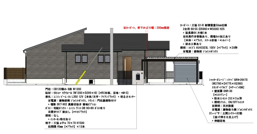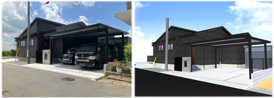 実際の施工写真と比べながら、こだわりポイントと採用しているエクステリアのご紹介をさせていただきます♩