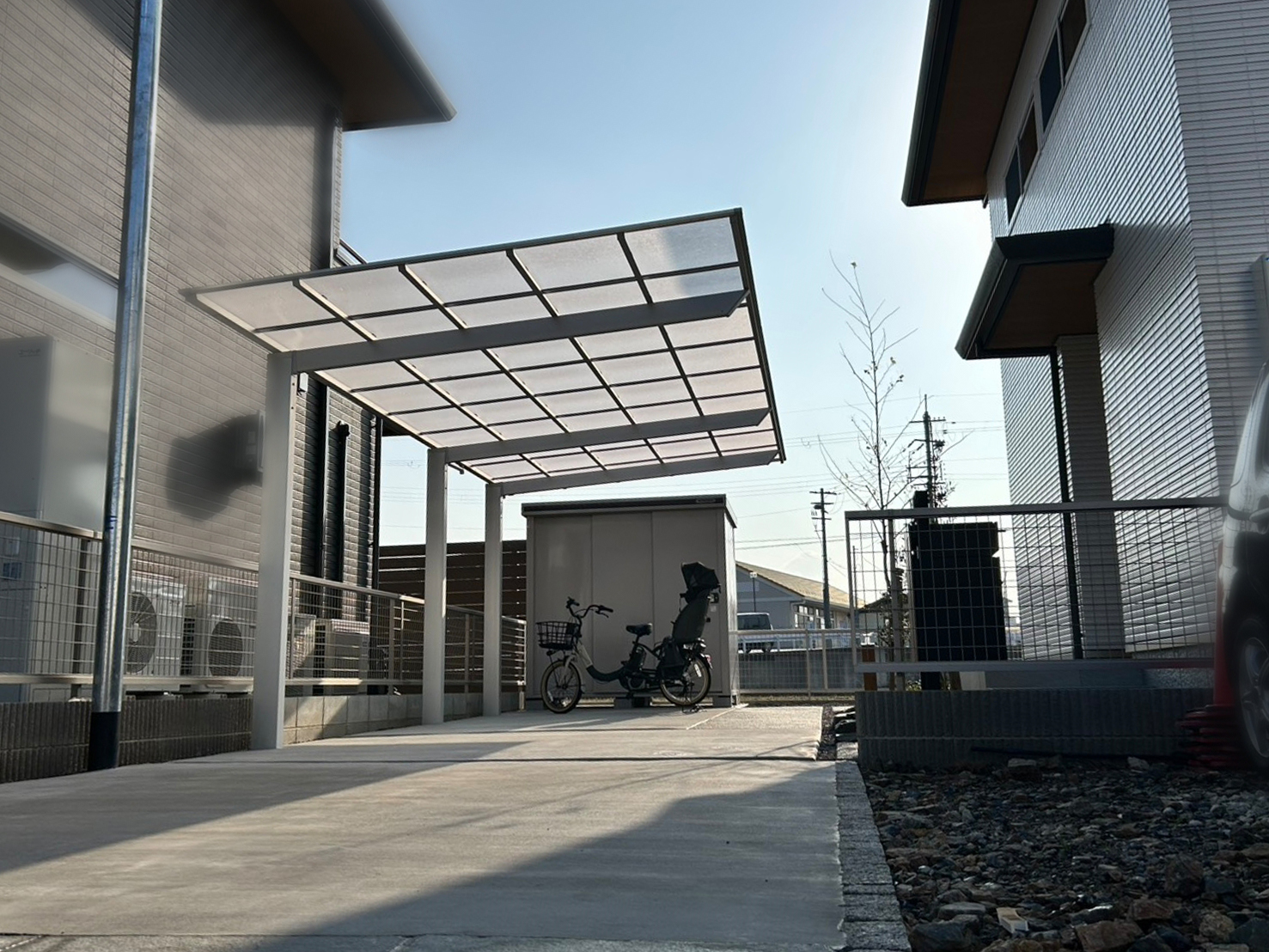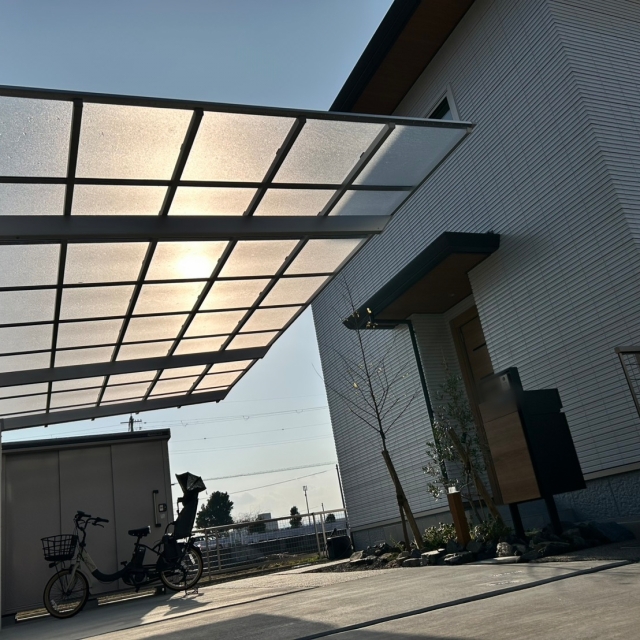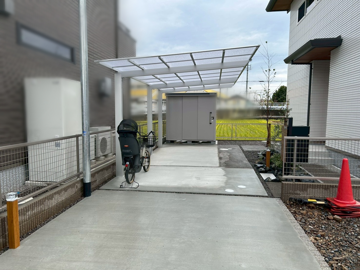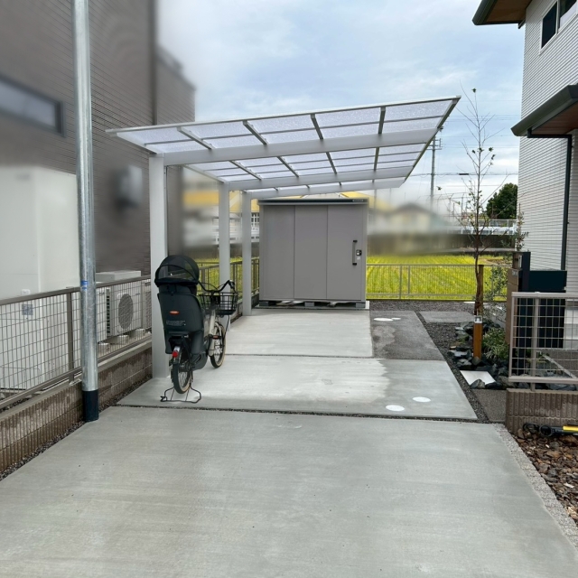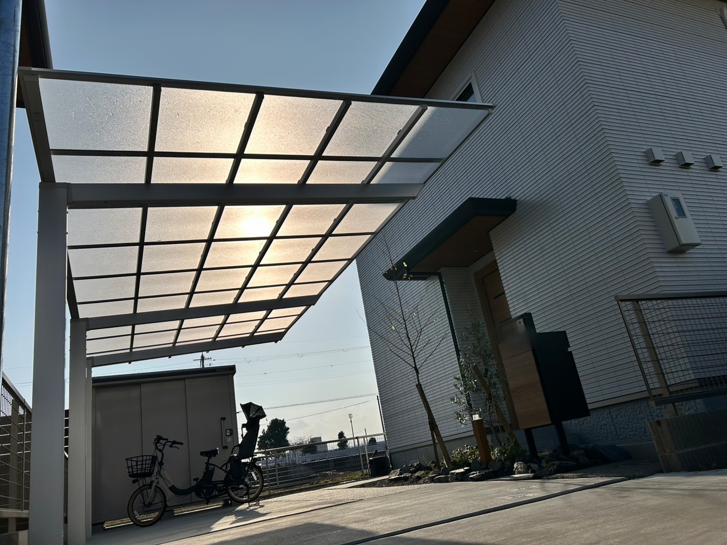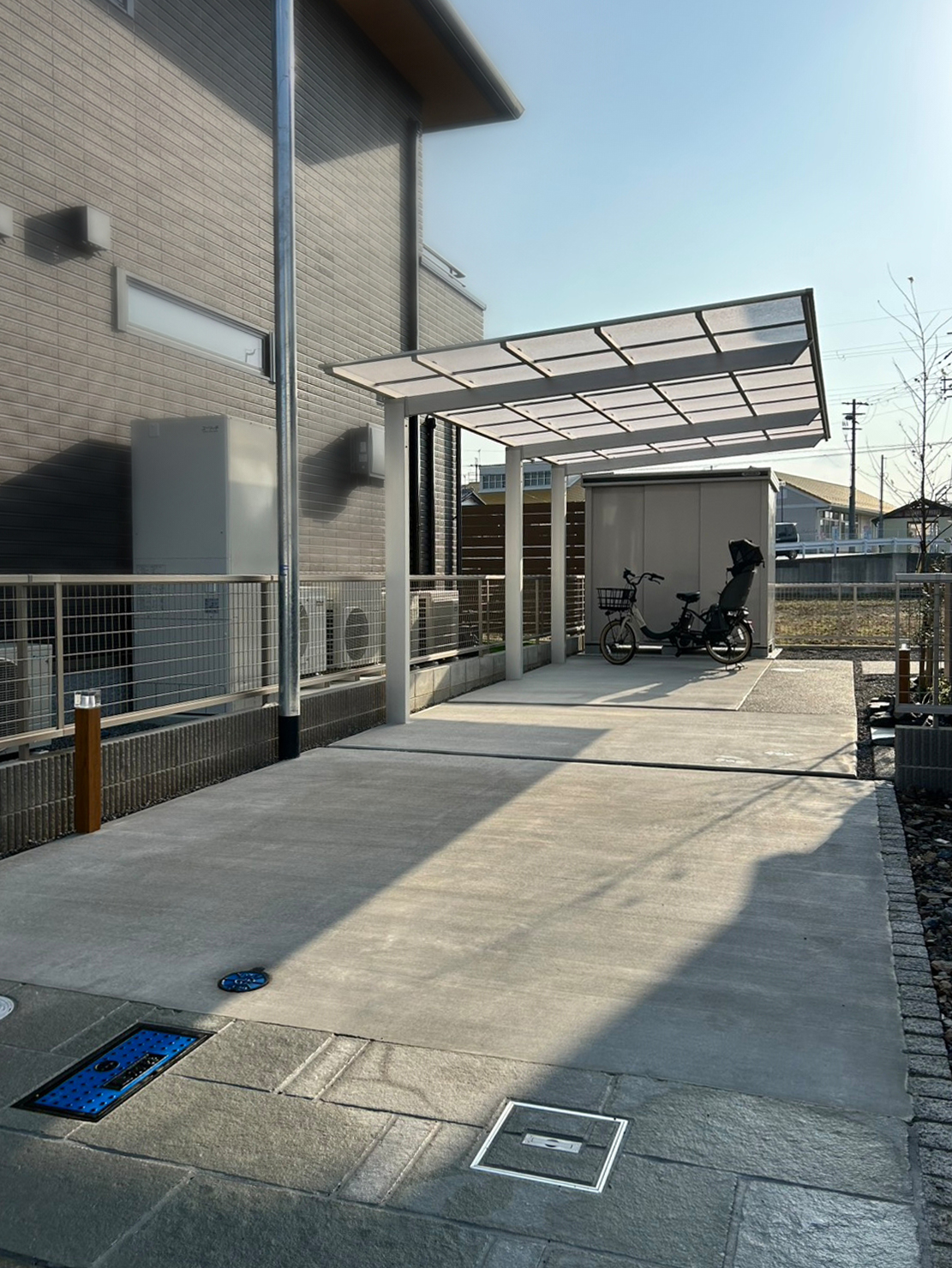 また、敷地や建物の位置によってはカーポートとサイクルポートの両方を入れることができない場合もあるかと思います。そのような時には今回のようにカーポートサイズを奥行延長することで車も自転車も停められるようになりますね!