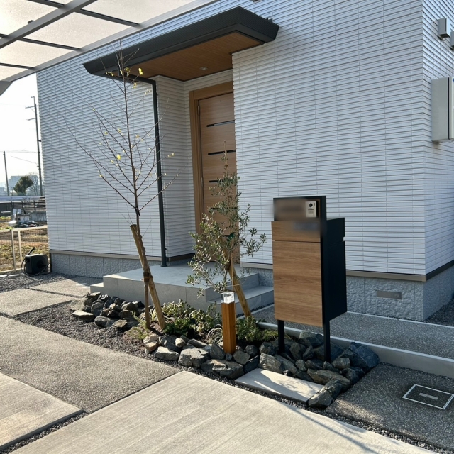 実際の施工写真と比べながら、こだわりポイントと採用しているエクステリアのご紹介をさせていただきます♩