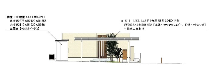 また、駐車スペースの真後ろに設置することで、車から荷物を下ろす時も物置から車へ荷物を動かす時もどちらの状況でも、使いやすいようになっています。
