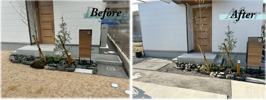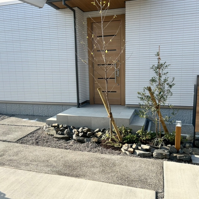 既存の外構でされていた、アプローチ部分を活かしつつ新たにアプローチを追加しました。