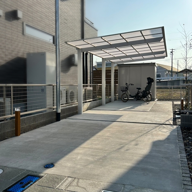 カーポートは1台用の奥行延長を採用していることで、車を駐車するスペースに加えて自転車を停められるスペースの確保ができるのでカーポートと別にサイクルポートを設置する必要がなくコスト面でも軽減に◎