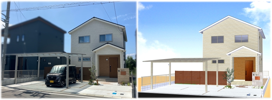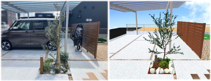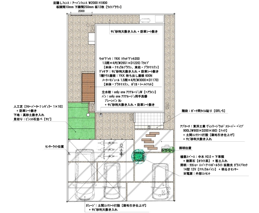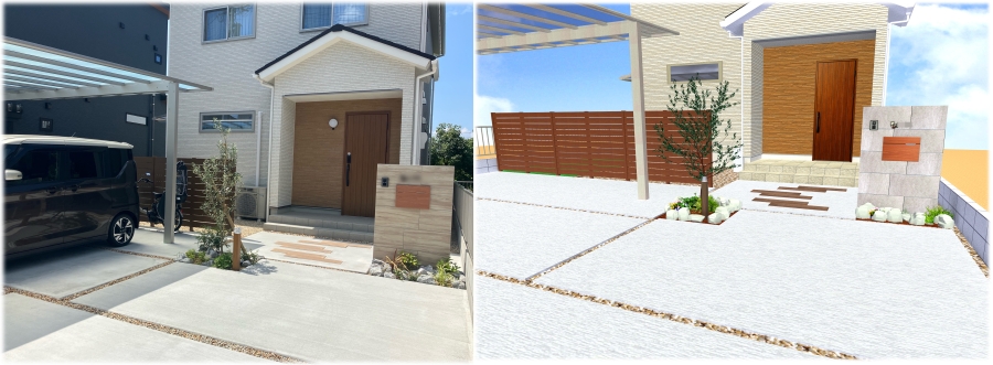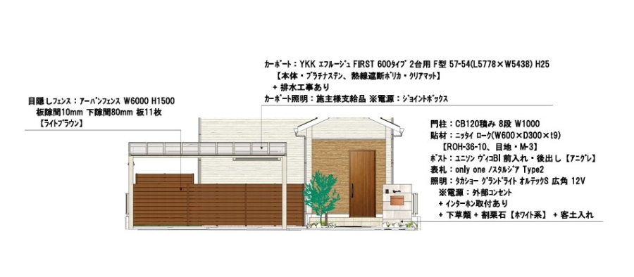 実際の施工写真と比べながら、こだわりポイントと採用しているエクステリアのご紹介をさせていただきます♩