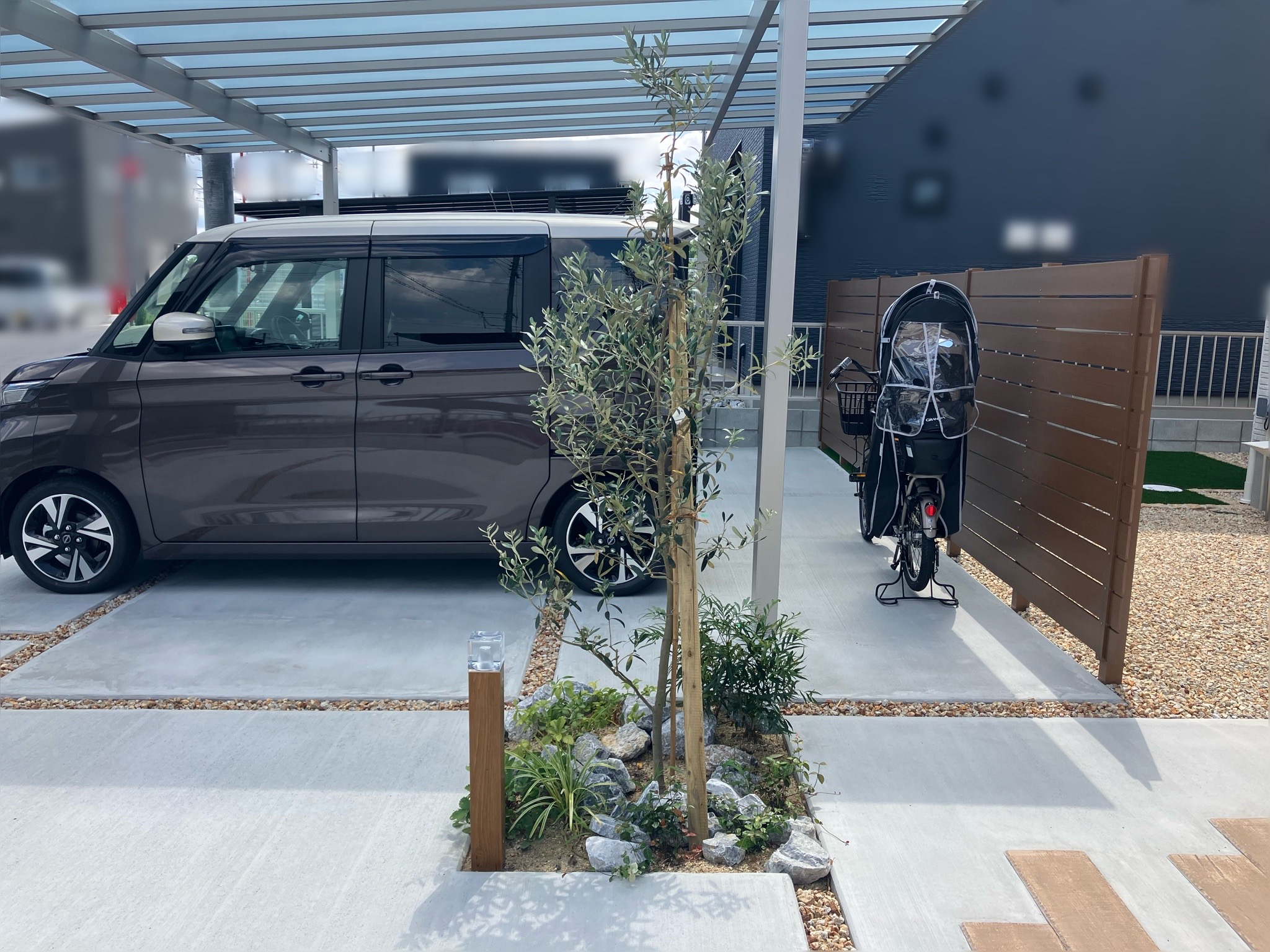 自転車も車も停めたいけどサイクルポートもカーポートも設置するのはどうなのか?と悩まれる方は多いです。その中でどちらかを諦めて雨濡れを我慢するしかない、なんてことにはなりたくないですよね!もちろん敷地の大きさ・ご予算によっては難しい場合もありますが、今回のように奥行があるカーポートや間口の大きいカーポートを採用することで理想が叶う場合もあります◎自動車と自転車の両方を屋根下に停めることができ、見た目もすっきりまとまっていますね。屋根下での乗り降りがてぎることにより、雨の日のお買い物や、お子様を連れてのお出かけの際に負担を軽減することができると思います🙆🏻♂️