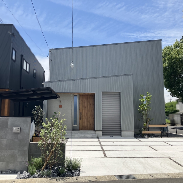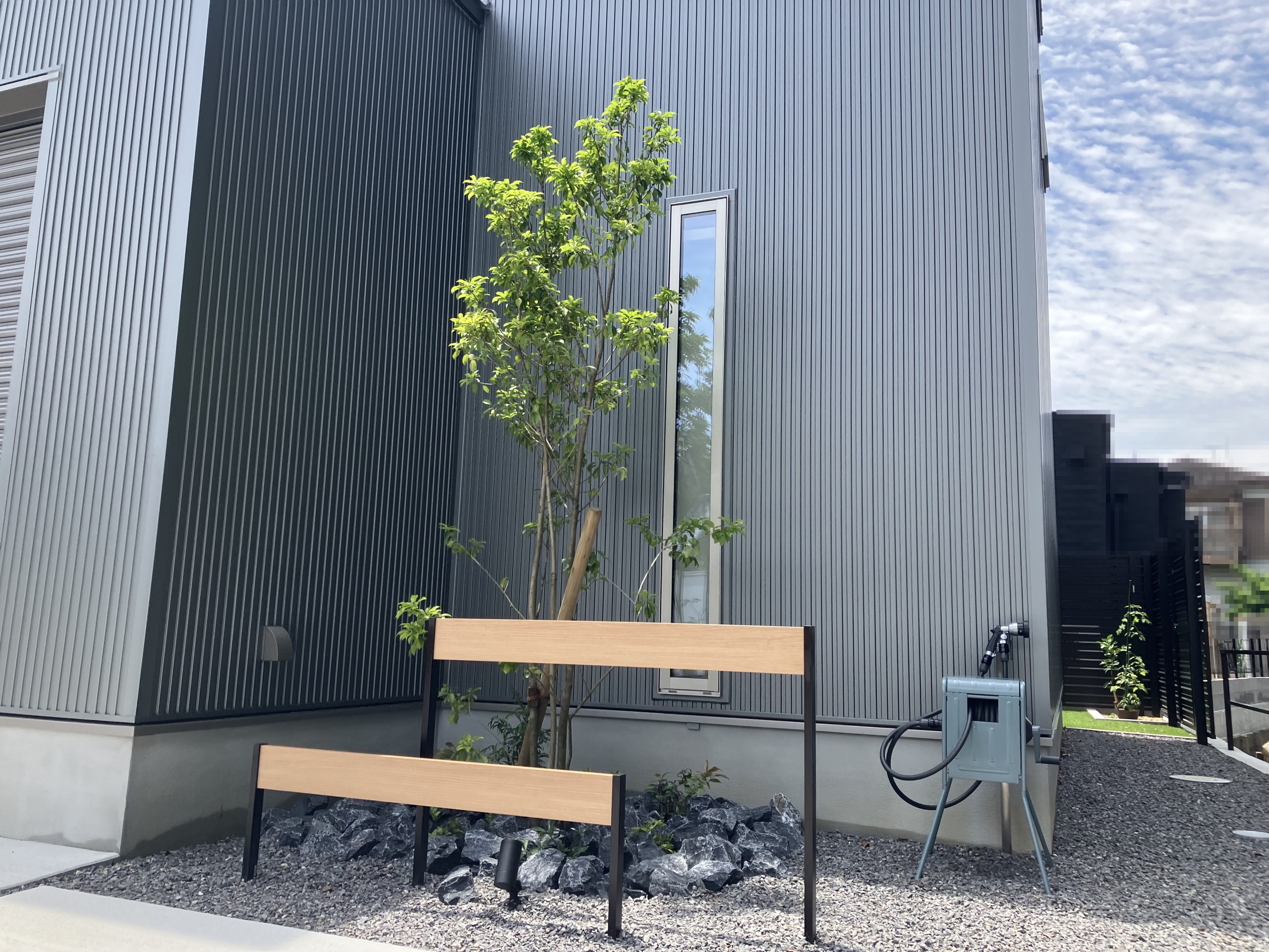 シンプル×自然のあたたかみを感じられる中で実用性も兼ね備えた外構です。