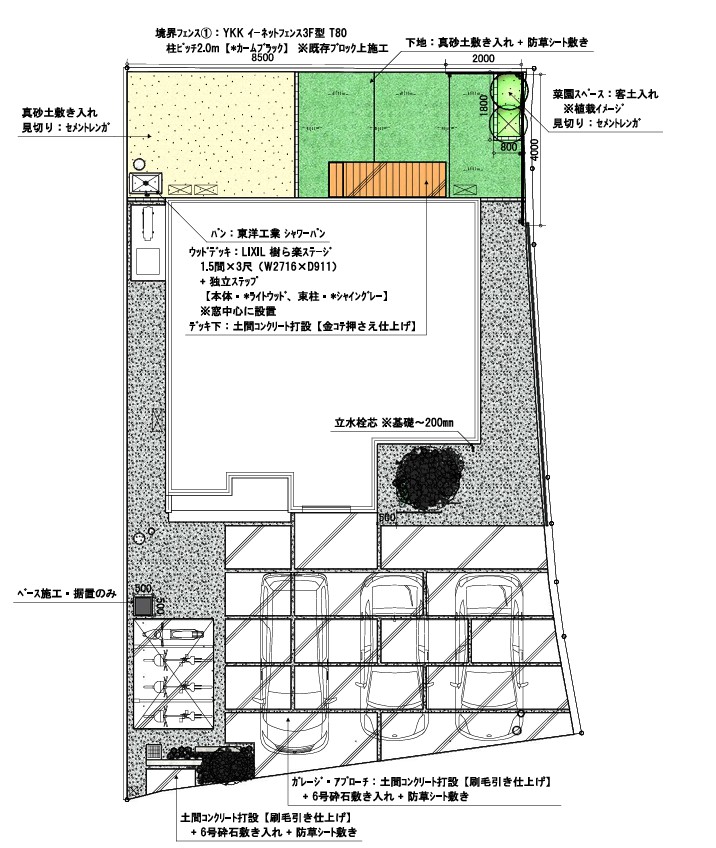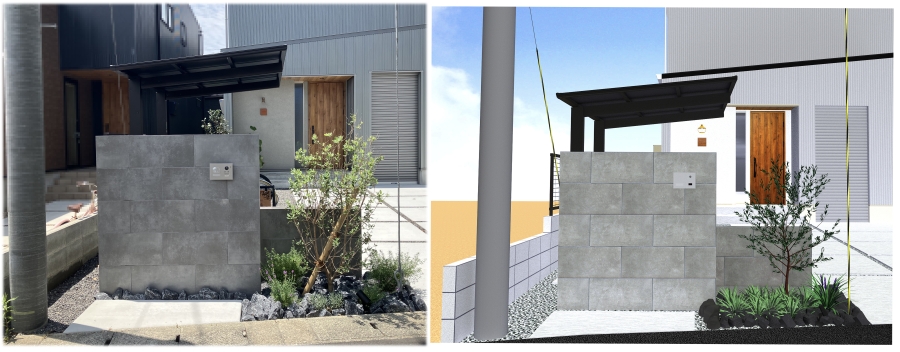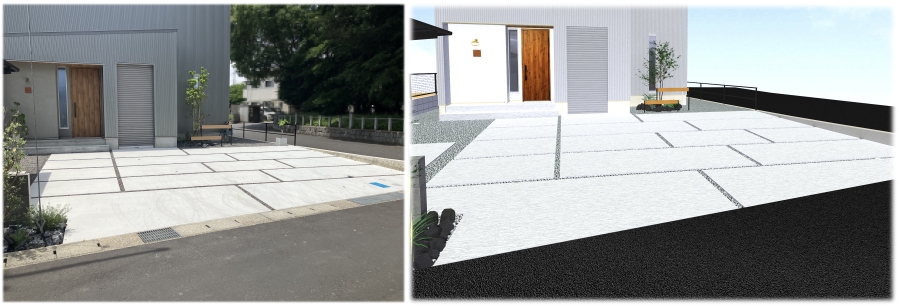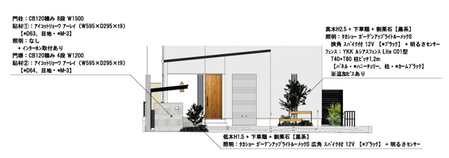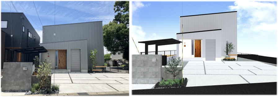 実際の施工写真と比べながら、こだわりポイントと採用しているエクステリアのご紹介をさせていただきます♩